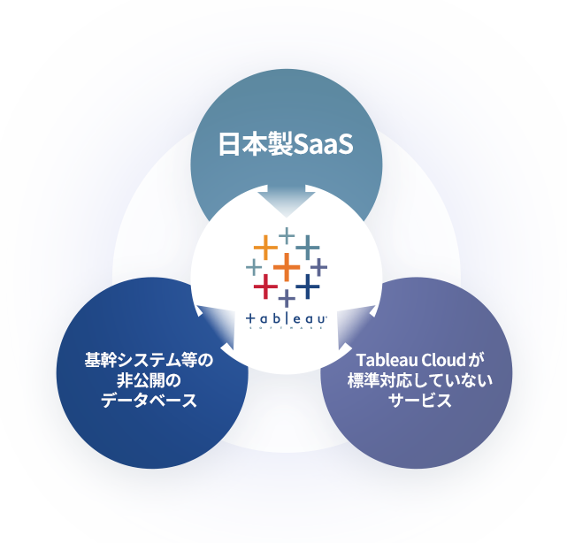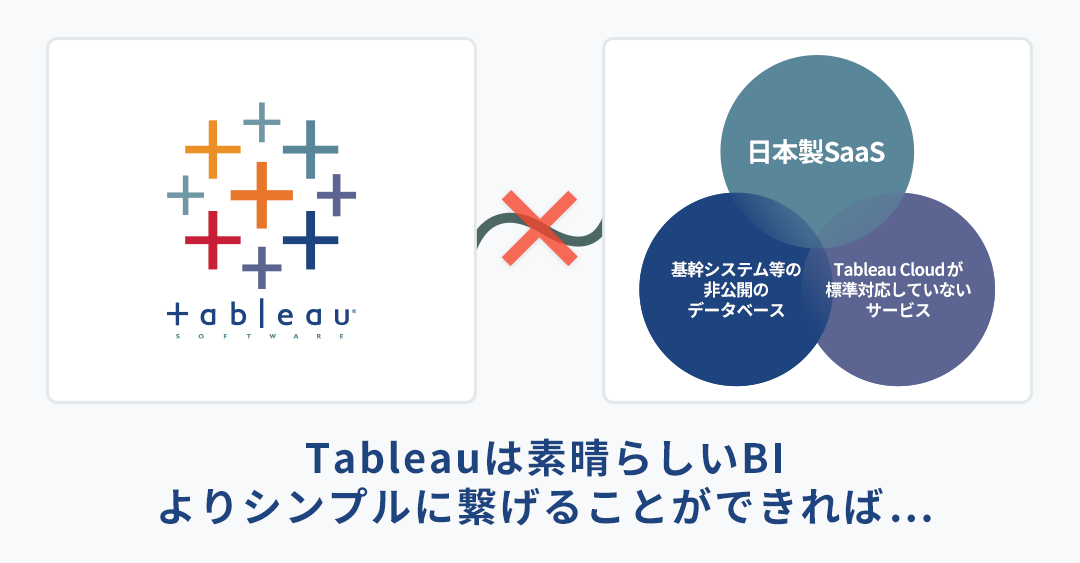 Tableauは世界トップクラスのBIツールですが、グローバル製品ゆえに日本独自のSaaSサービスとの接続が困難な場合があります。Any2Tabが架け橋となり、日本製サービスとTableauをスムーズに連携させます。