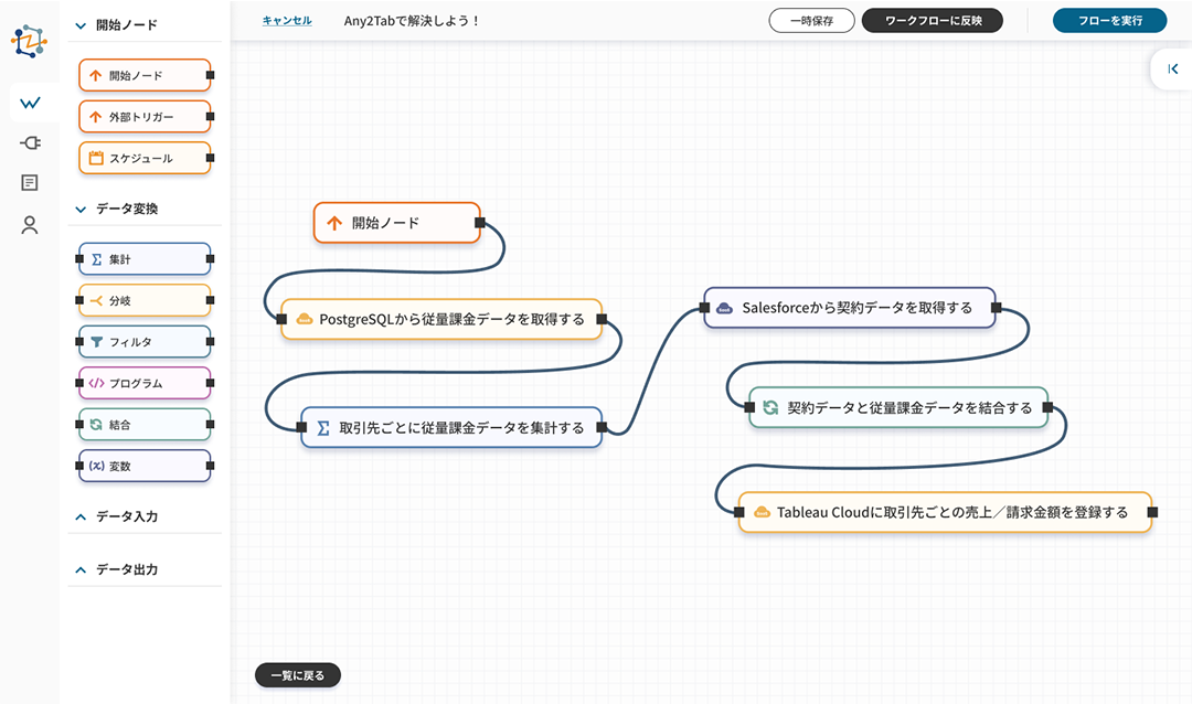 Top > Any2Tab | Tableauへのデータ接続をもっと手軽に > フロー/連携設定 | Any2Tab | Tableauへのデータ接続をもっと手軽に