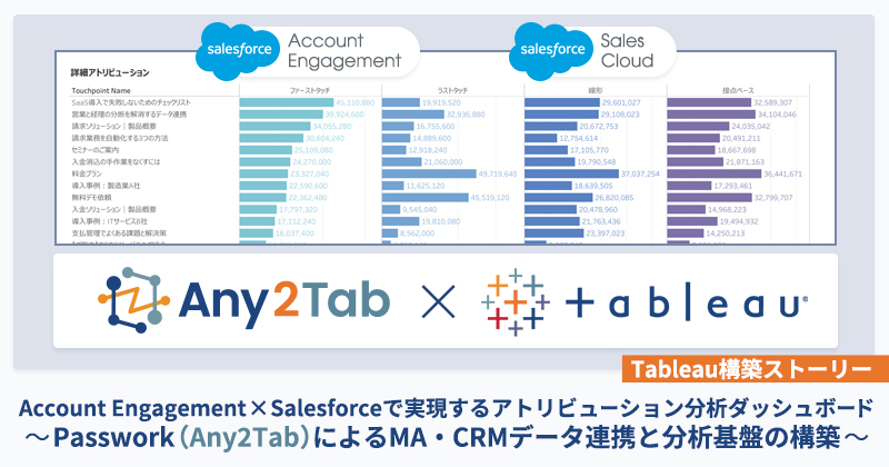 【Tableau構築ストーリー】Account Engagement × Salesforceで実現するアトリビューション分析ダッシュボード〜Passwork(Any2Tab)によるMA・CRMデータ連携と分析基盤の構築〜